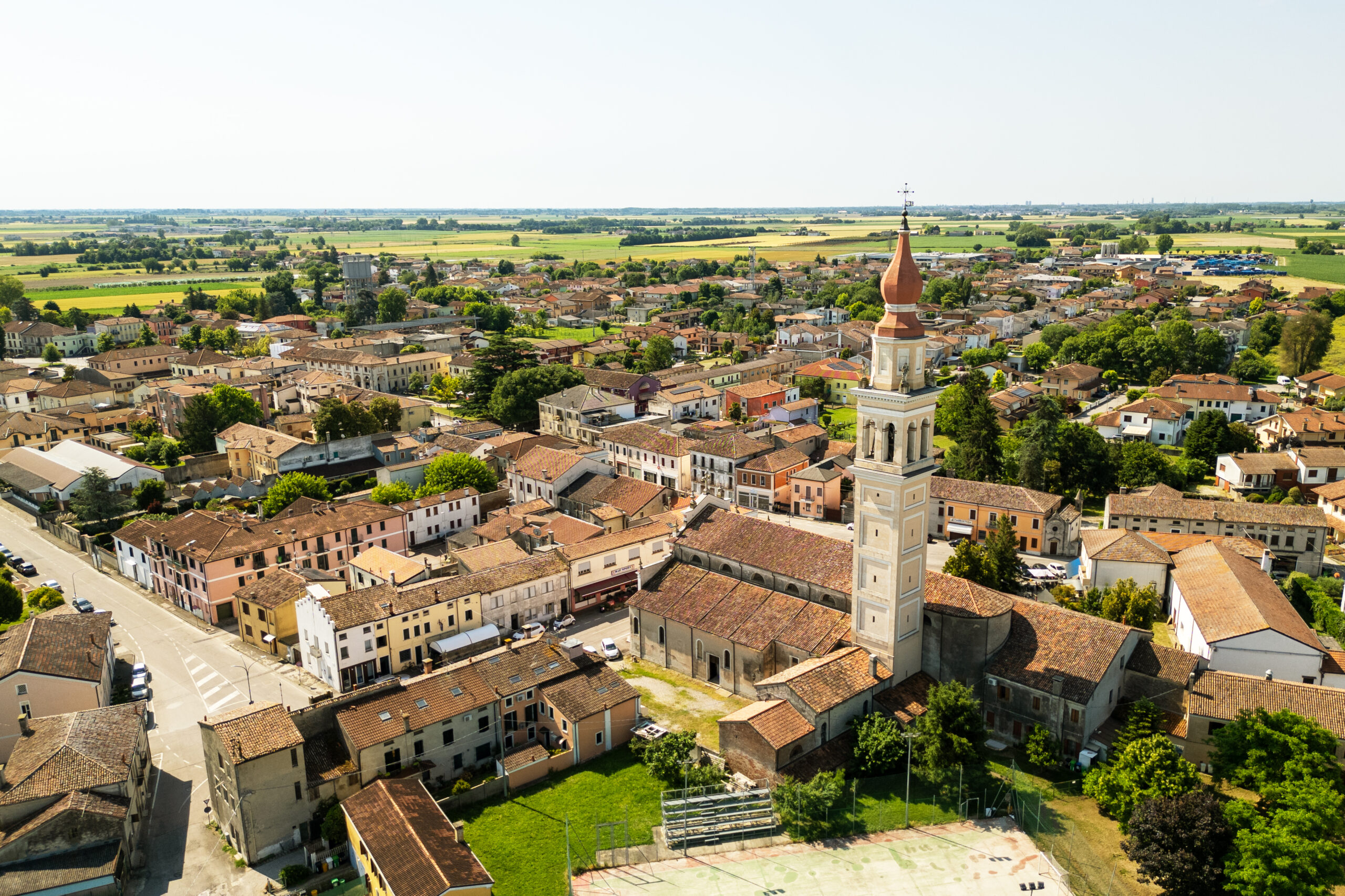 Fiesso Umbertiano si trova tra Canalbianco e Po, in un paesaggio sospeso tra storia sacra e memorie nobiliari.