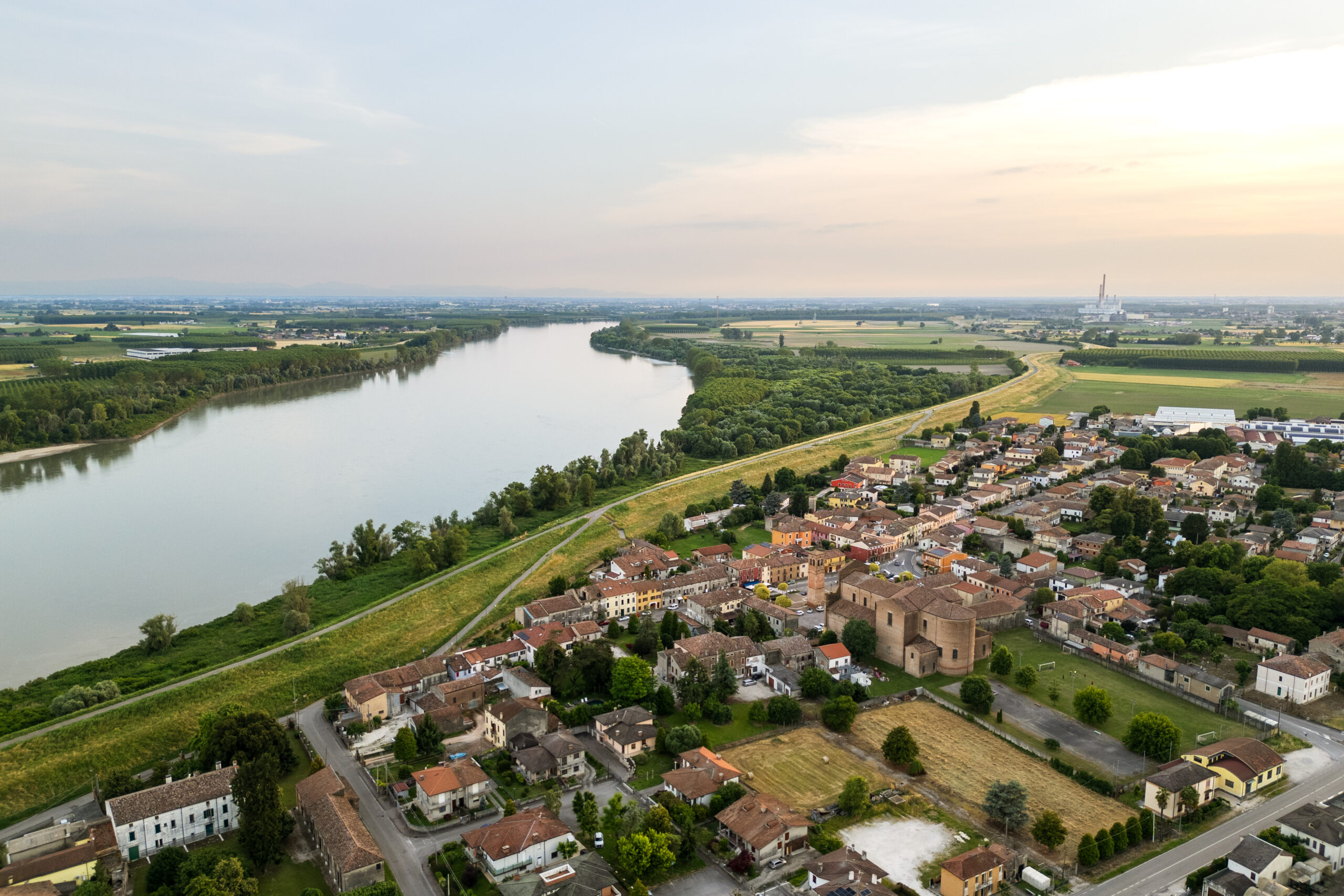 Melara, borgo di confine situato a ovest del Polesine, unisce memoria antichissima, architettura e archeologia, immerso nel paesaggio del grande fiume Po.