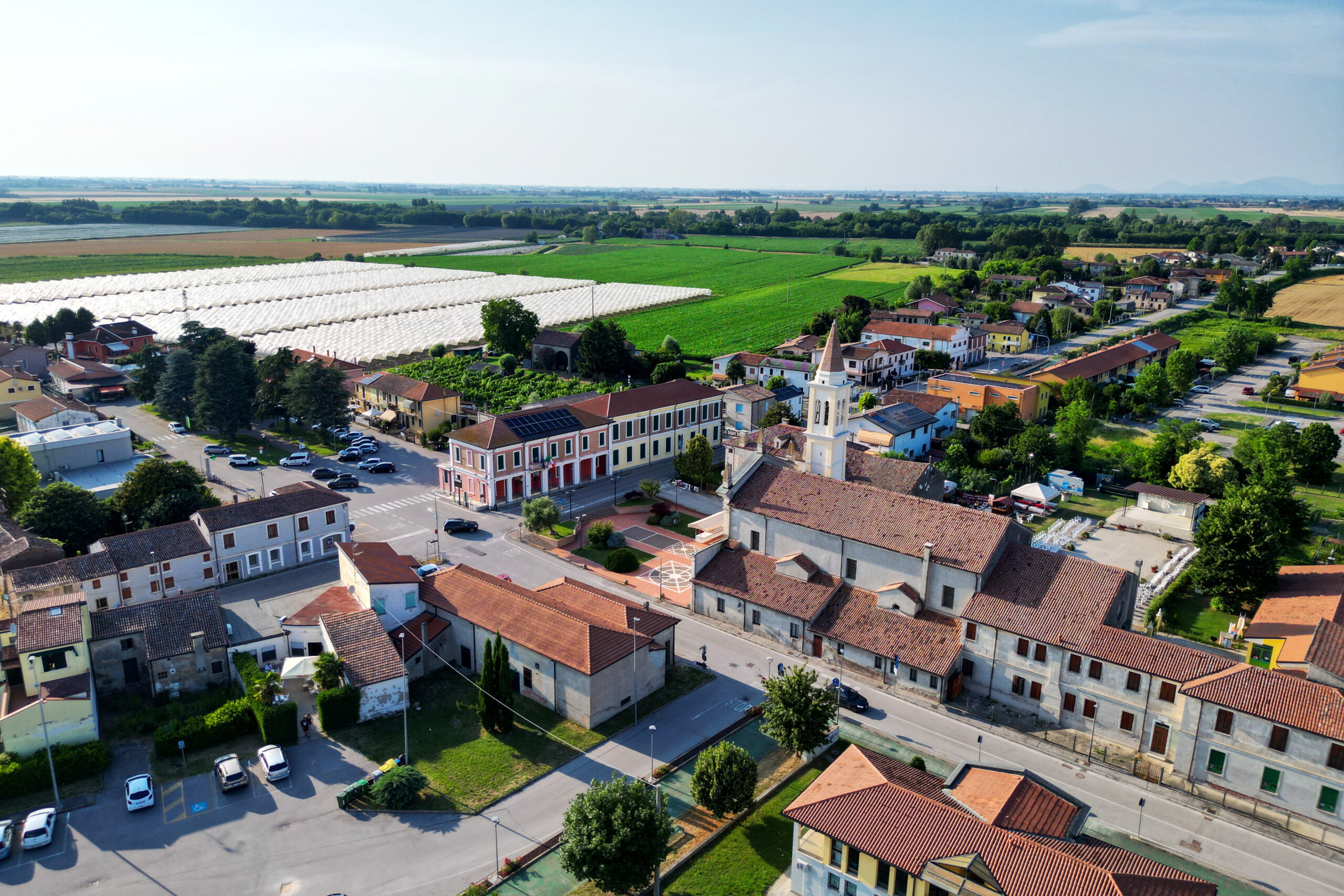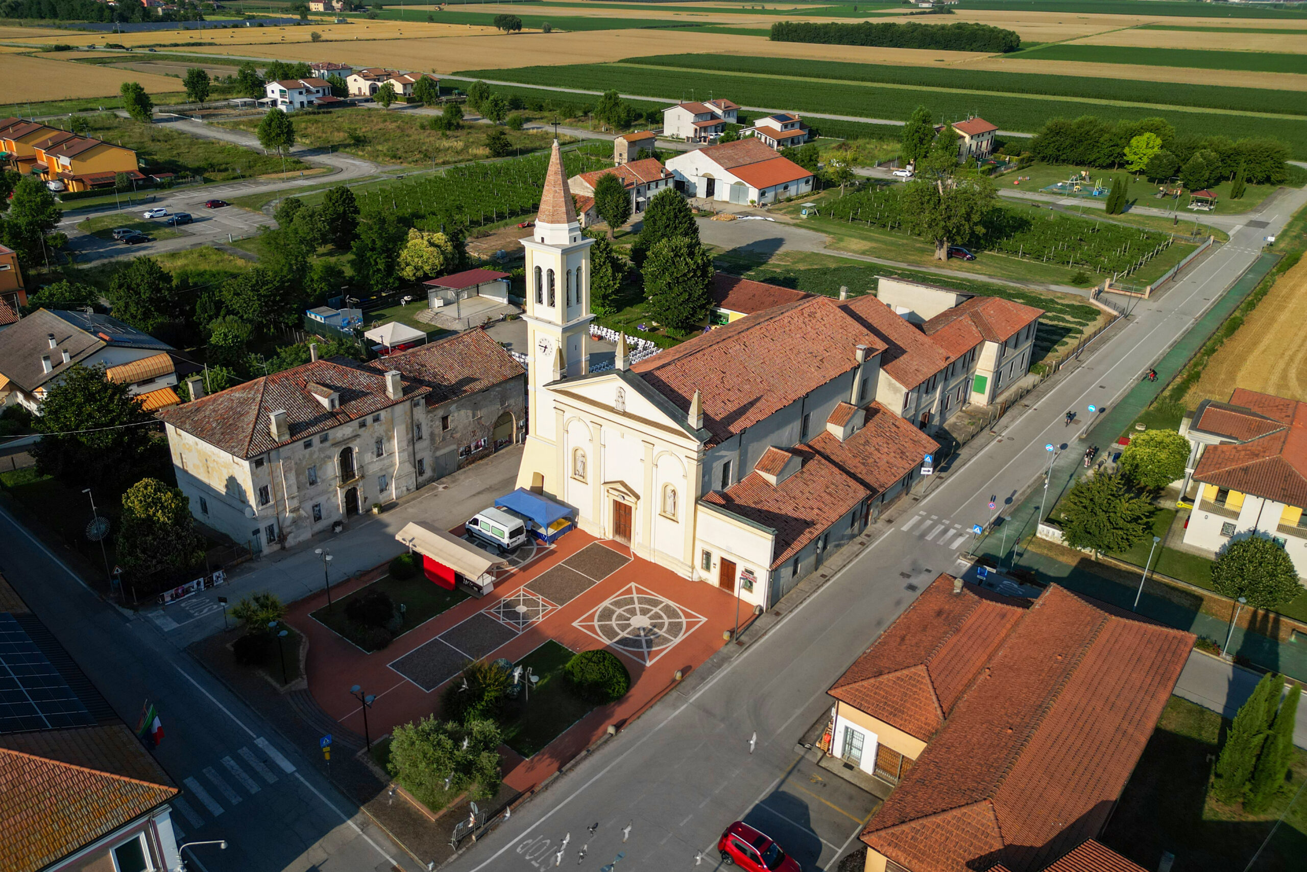 La Chiesa di San Giovanni Battista, secondo gli scritti di monsignor Giampietro Ferretti, fu edificata intorno al 1520 per volontà del nobile veneziano Benedetto Dolfin. Originariamente semplice, con due altari e una sola navata, la chiesa fu ristrutturata e ampliata nel XVII secolo per accogliere l’aumento dei fedeli, e successivamente ancora nel 1833, quando furono rinnovate le finestre, il soffitto e aggiunte quattro cappelle laterali.