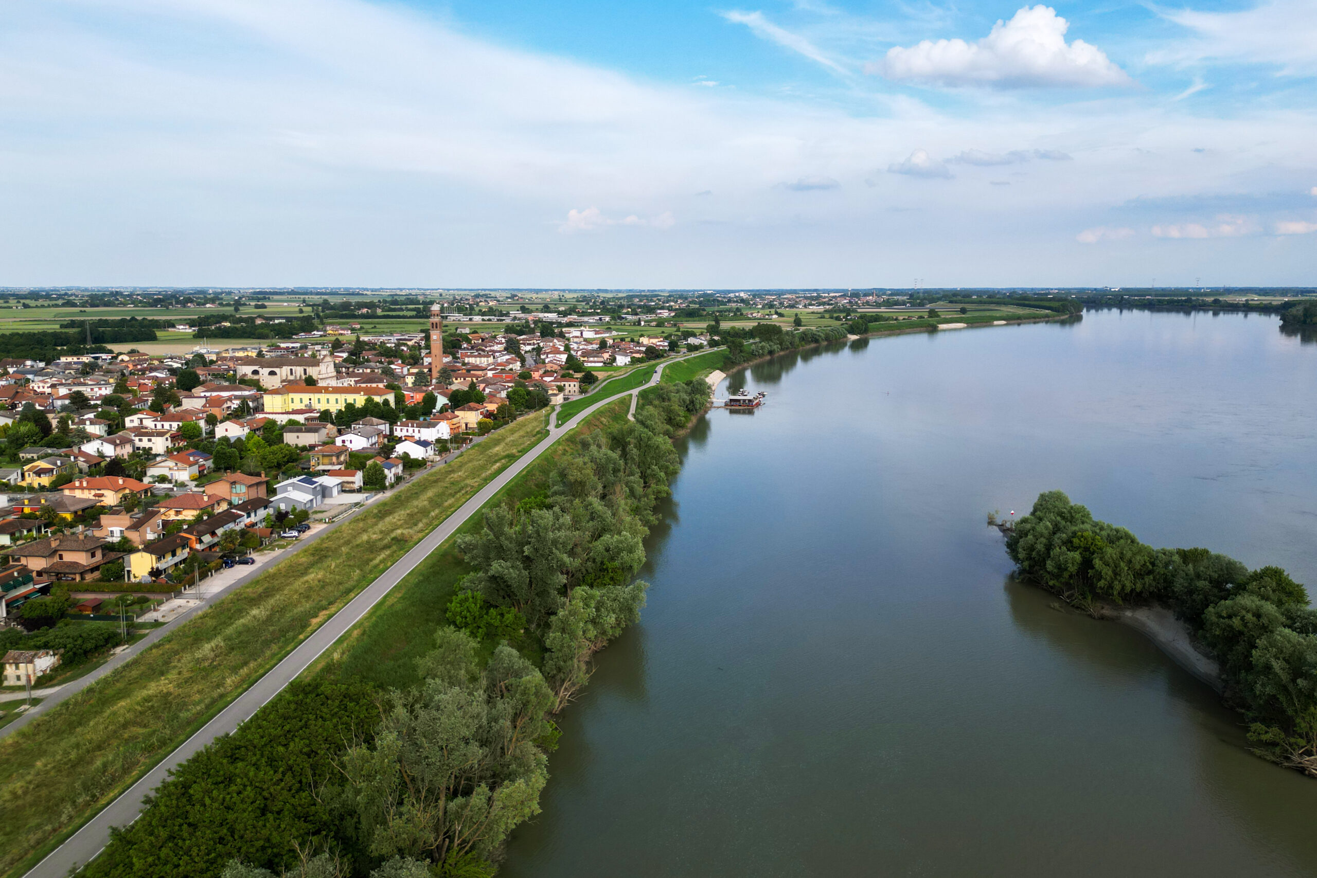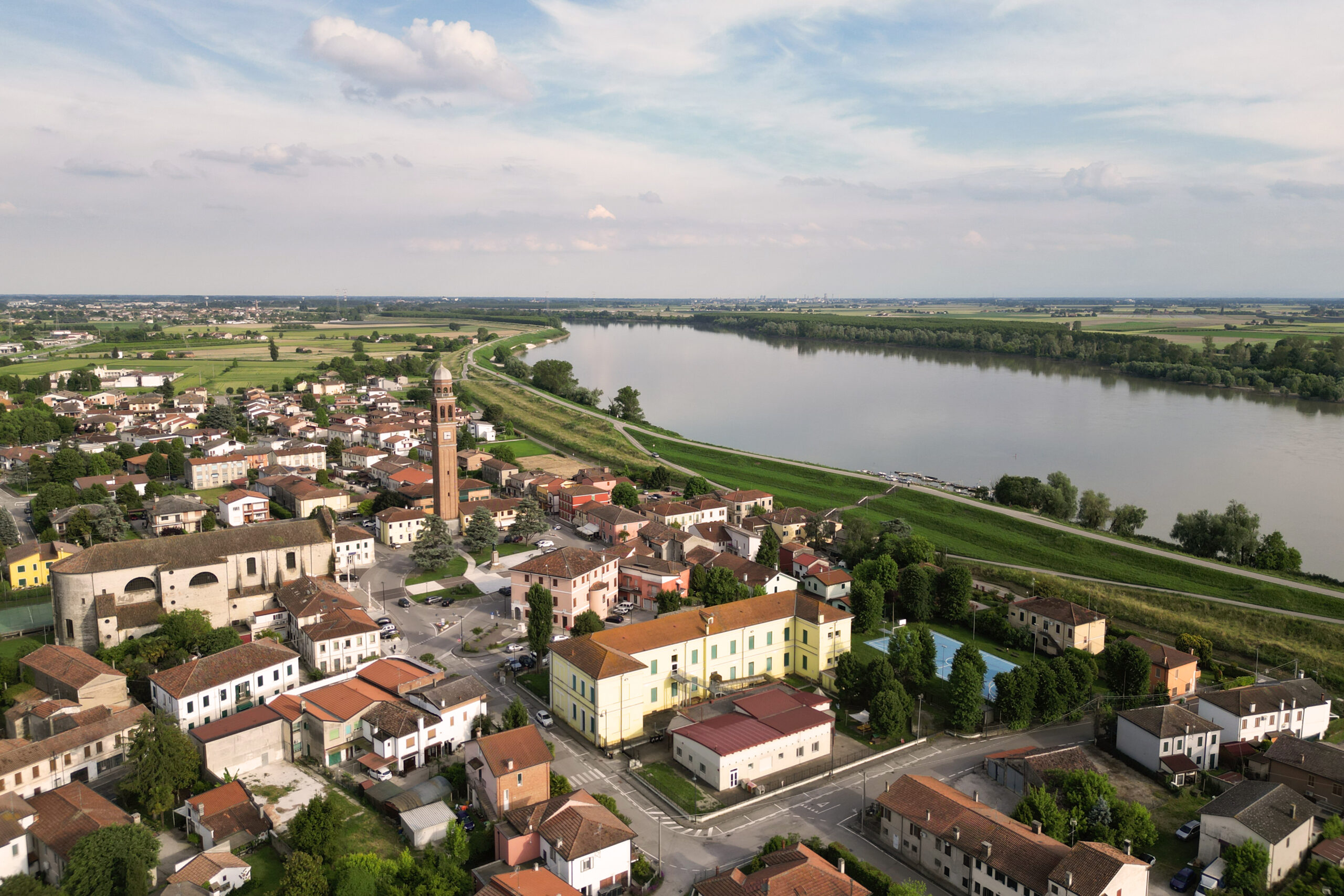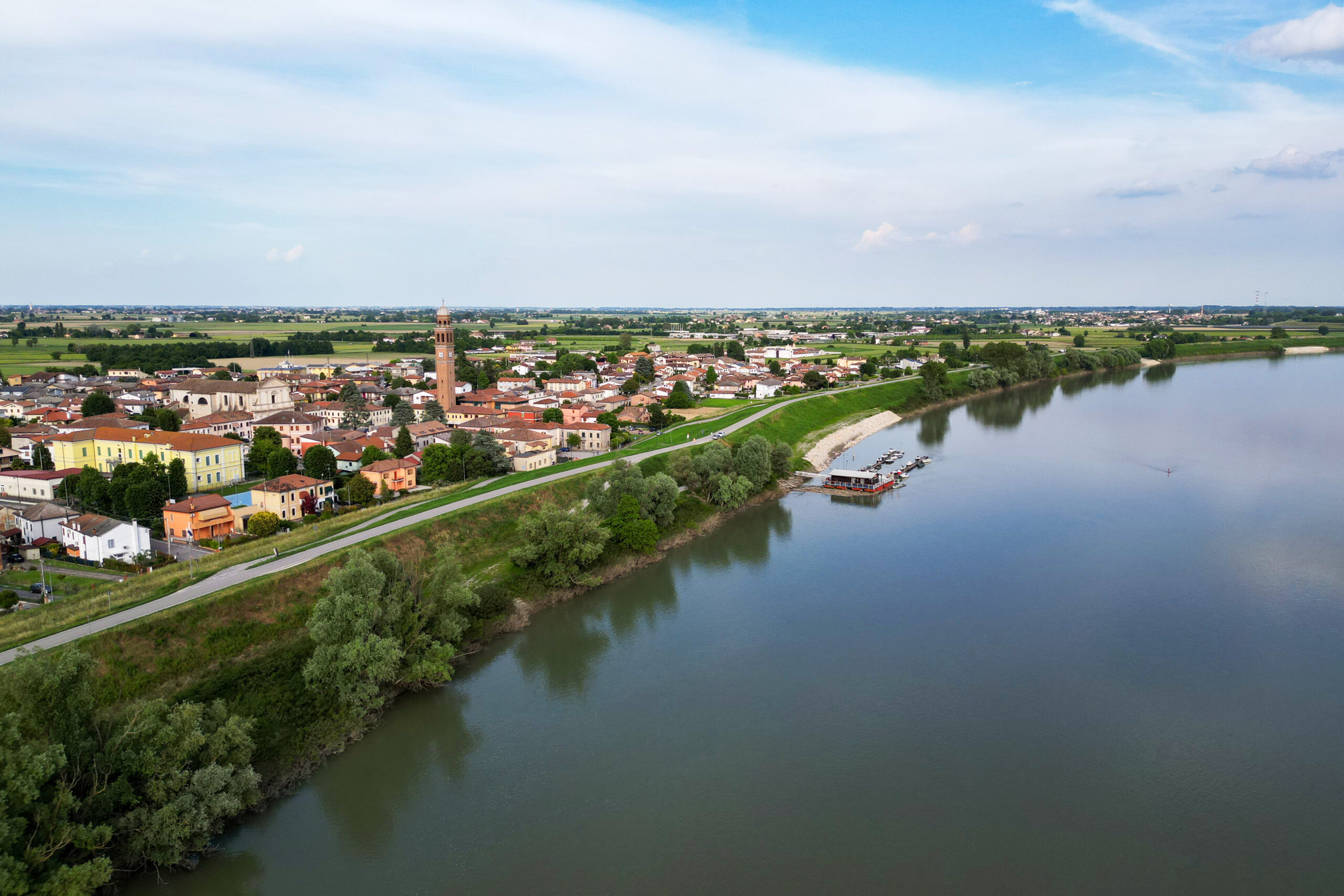 Affacciato sul Po, Stienta è un borgo che racconta la propria storia attraverso luoghi di culto, architetture aristocratiche e antiche leggende legate al territorio fluviale. La Chiesa di Santo Stefano Papa e Martire, edificata tra il 1791 e il 1799, è l’attuale cuore religioso del paese, eretta sul sito di tre chiese precedenti. All’interno conserva l’unica testimonianza rimasta degli affreschi del pittore bolognese Antonio Maria Nardi, realizzati nel 1933 e in gran parte distrutti durante la Seconda guerra mondiale.